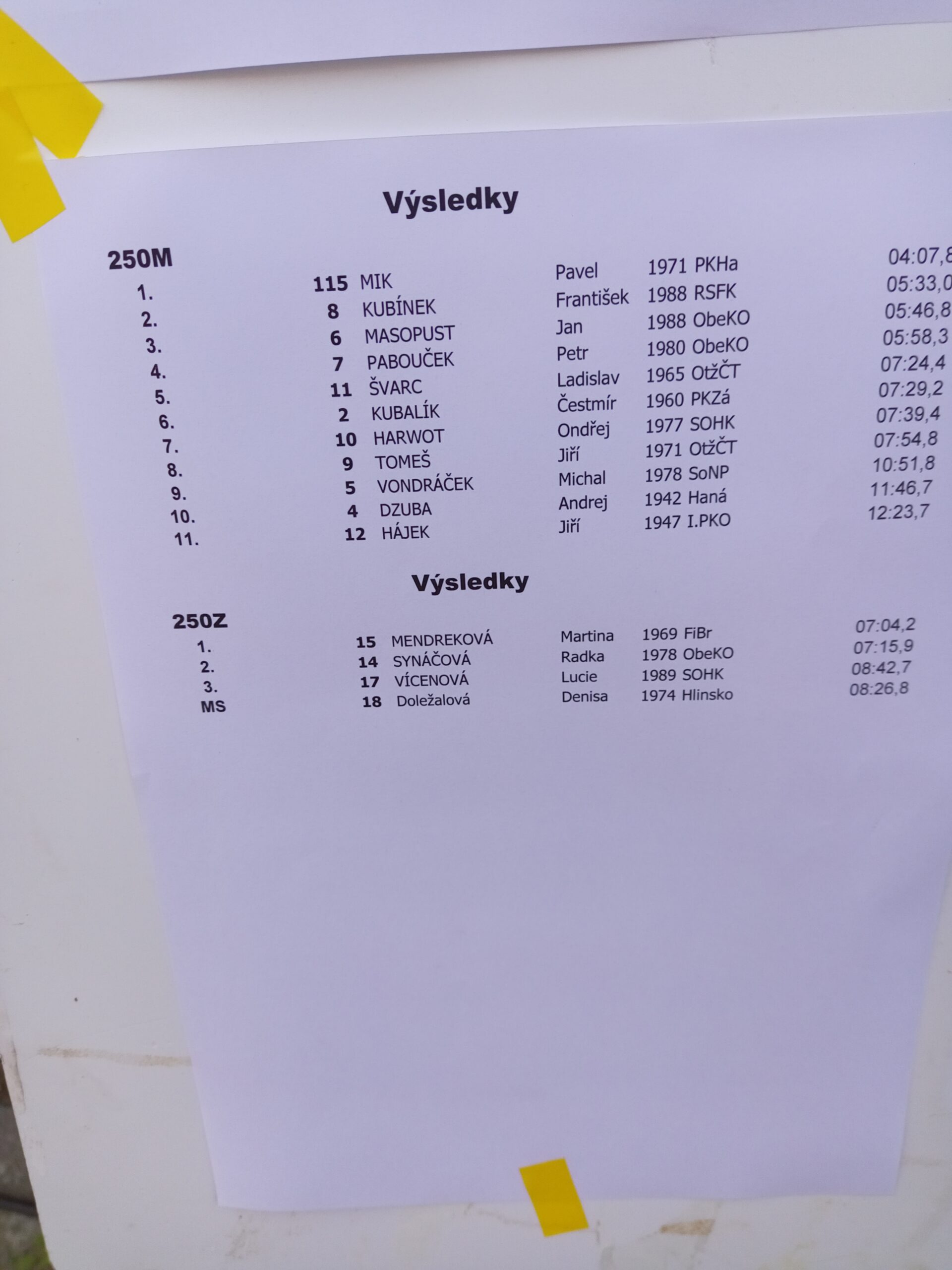 Výsledky tak, jak byly vystaveny na soutěži cca v 15:00, na web vystaveny v 15:20.