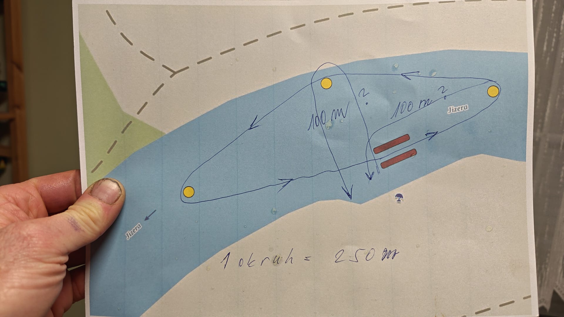 Trať 100 m bude bez bonifikace za pořadí, výkonnostní stupeň si i tak vyplavete. Jak bude vedena se teprve rozhodne. Ostatní tratě viz nákres, jsou vedeny tak aby silnější proud při pravém břehu byl nápomocen, tj. točí se na levé rameno.